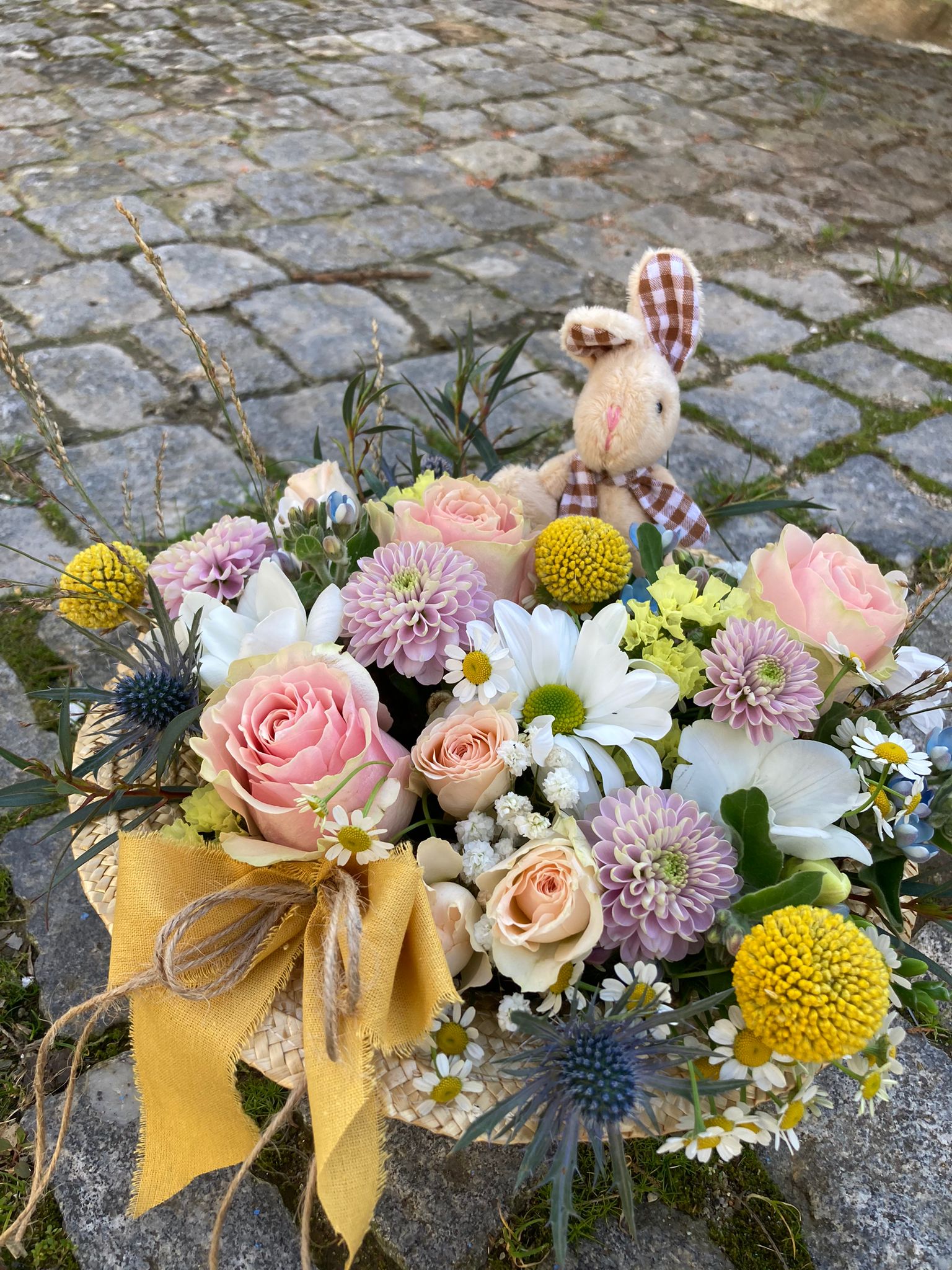 Nesta coleção especial de Domingo de Ramos , juntámos a simplicidade do campo à beleza das flores silvestres. Cada chapéu de palha é adornado com flores do campo, como se tivesse sido colhido num passeio por entre prados em flor — leve, natural e cheio de vida.